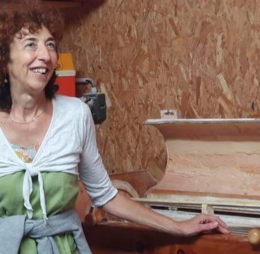 Par la suite, Véronique, nous présente l’organigramme du fournil : les fagots de bois qui alimentent le four, la meule qui concasse les différentes céréales en farine, et les différentes étapes, sur le marbre le pétrissage, la pousse, le façonnage, l’enfournement et la cuisson des pains dans le four à bois complètement rénové.