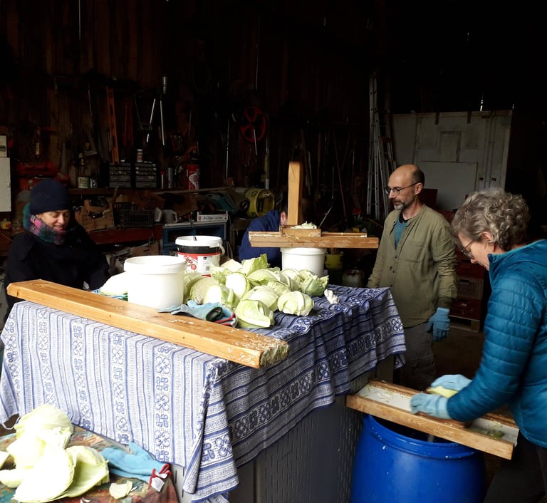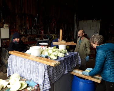 Comme chaque année nous sommes conviés.es à la ferme de Véronique et Thibault pour préparer la choucroute.